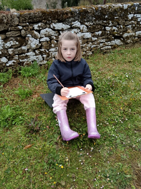 Enfin, le dernier atelier était un temps d’écriture autour des sensations, avec pour thème : « j’entends, je vois, je sens ». Les élèves ont pris le temps d’écouter leur environnement, d’observer les détails autour d’eux et de décrire leurs ressentis, développant ainsi leur expression écrite et leur sens de l’observation.